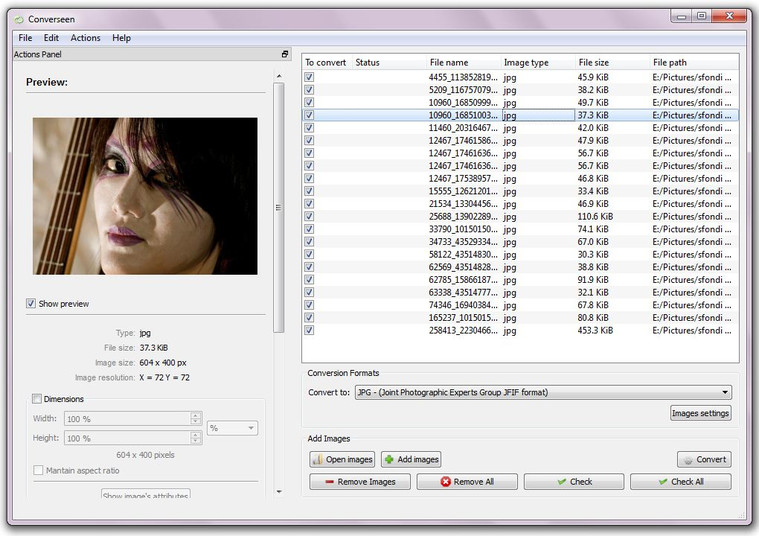 Converseen是一个跨平台的GUI工具,可以轻松地调整和转换单个或多个图像。应用程序使用ImageMagick,所以支持的图像格式其中包括:GIF,JPEG PNG,PDF,DPX,EXR等。