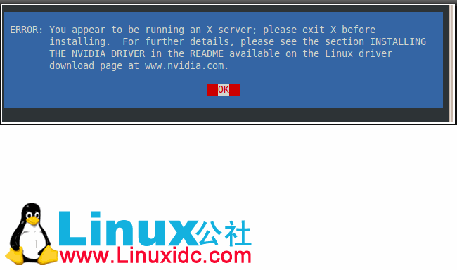 然后输入 “sh devdriver_4.1_linux_32_285.05.23.run”,结果显示“ERROR: The Nouveau kernel driver is currently in use by your system. This