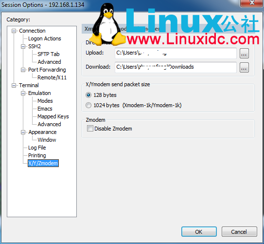 成功安装后设定好文件的上传及下载路径就可以通过SecureCRT来上传或下载文件了,如下图所示: