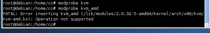 - # modprobe kvm_amd #intel CPU 是 kvm_intel