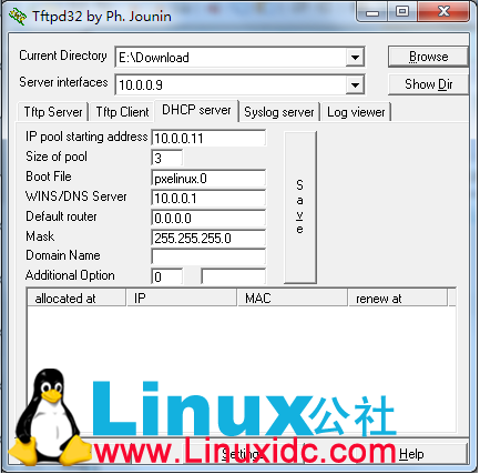 IP pool starting address:表示第一个PXE客户端连接后获得的IP地址
