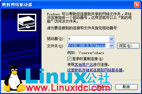 3、将 samba 共享的 Linux 目录,映射成 Windows 的一个驱动器盘符: