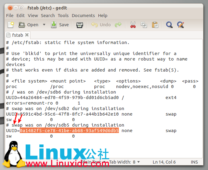 sudo gedit /etc/fstab