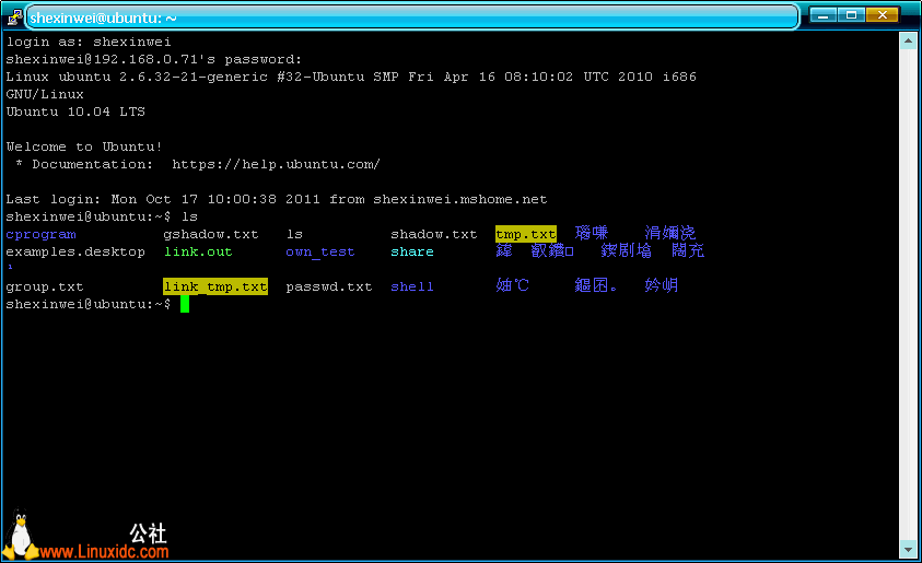 - www.linuxidc.com@linuxidc:~$ ssh localhost