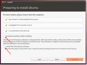 从Ubuntu 11.04 版本开始,我们就可以在Ubuntu安装过程中安装一些编码包,如Adobe Flash\MP3等等。(但是必须连接网络,如果网速很慢,这回延长安装时间,建议直接下一步)