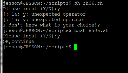 1、使用该脚本时,如sh sh06.sh,会出现错误,所以使用bash sh06.sh运行时不会出现错误