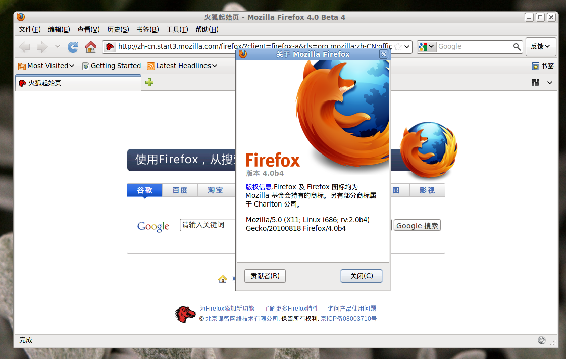 首先去官方网站下载最新版的火狐吧,中国版或者国际版都行。这里我以最新的火狐4.0beta4为例,操作系统为ubuntu 10.04,默认带的是firefox3.6,目的是替换默认的3.6为4.0。