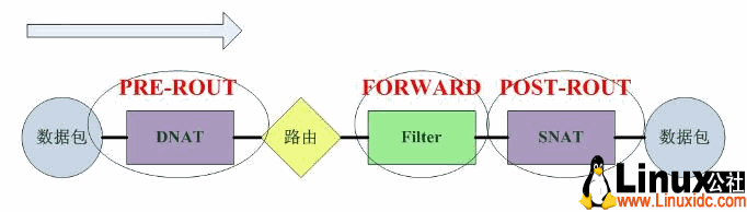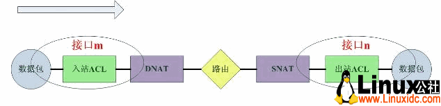 2).对于Linux的Netfilter,数据包的通过路径如下: