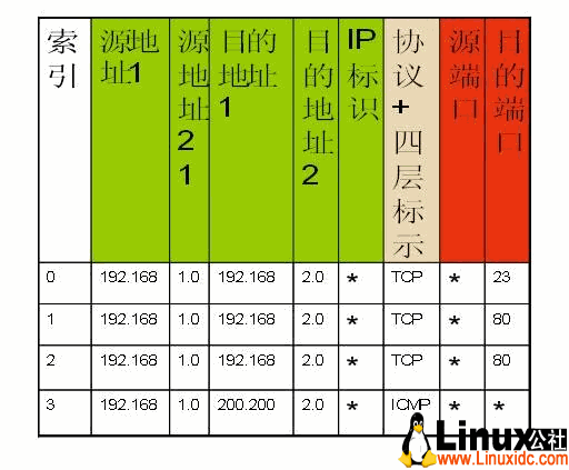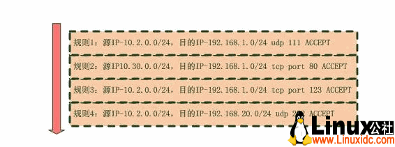 3.2.过滤表的条目由于Netfilter是内嵌在协议栈中的全局的过滤框架,加之其位置较高,很难对“哪些包应该匹配哪些策略”进行区分,而Cisco的ACL配置在网卡接口,并且指定了匹配数据包的方向,因此通过区分网卡接口和方向,最终一个数据包只需要经过“一部分而不是全部”的策略的匹配。比如从Ether0进入的数据包只会匹配配置在Ether0上入站方向的ACL。
