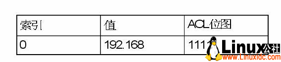 其中索引是为了查找和管理方便,而值则被填入规则中对应该表的匹配域的值,ACL位图指示该表的该记录匹配哪些ACL。因此,对于所有的匹配域,由于一共有8个匹配域,那么就有8个这样的表。为了更加容易理解,给出一个例子,首先看4条acl规则: