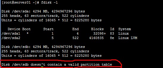 [root@server01 ~]# fdisk /dev/sdb