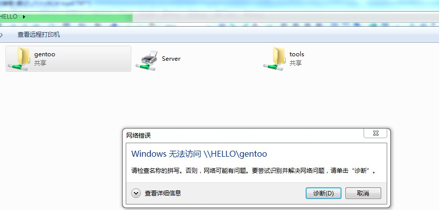 这个时候使用win网络邻居,以用户gentoo登陆后,就不能进入gentoo家目录了