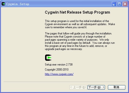 首先要下载cygwin的安装程序setup.exe,下载地址为: