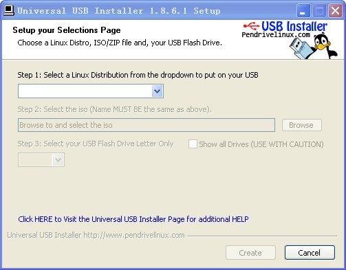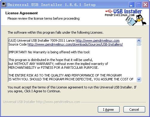1)首先下载Universal-USB-Installer-1.8.6.1.exe(参见 http://www.linuxidc.com/Linux/2011-01/31350.htm),它是一个Linux系统安装器,允许你从你的USB闪存驱动器选择安装一个Linux发行版。