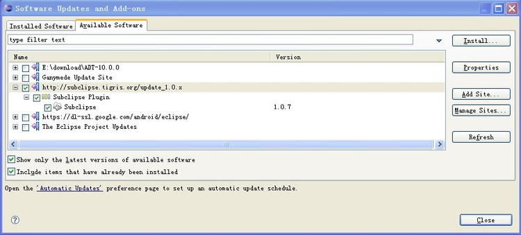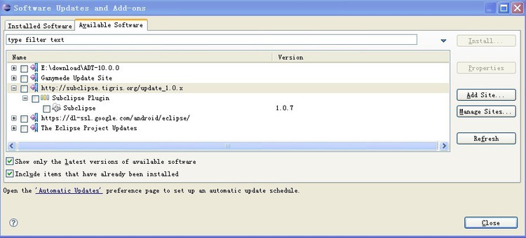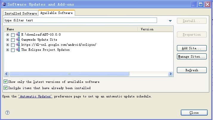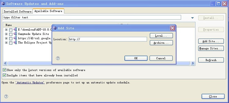 选择Available Software选项卡,点击Add Site按钮,效果如下图: