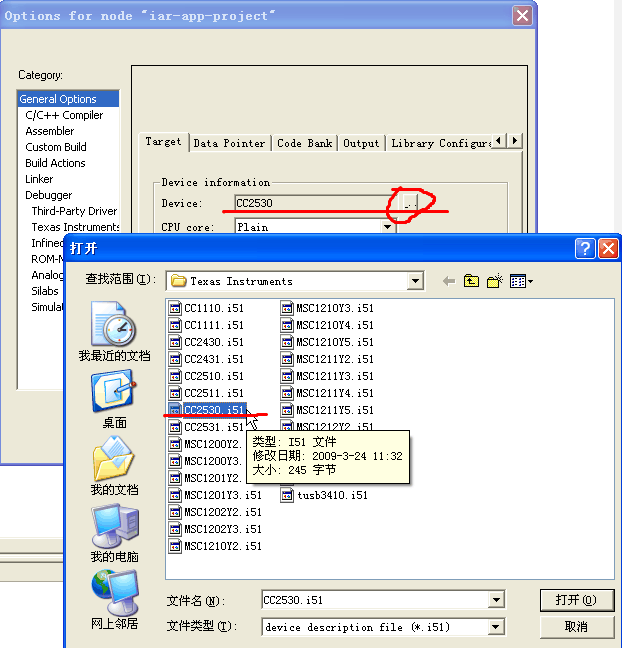 工程设置好之后,修改app.c文件,加入头文件ioCC2530.h。注销以sfr,sbit开头的寄存器定义语句,这些在ioCC2530.h被定义了,最后就是修改错误提示中未定义的寄存器名,因为TinyOS中某些寄存器名的定义与ioCC2530.h定义的名不相同。