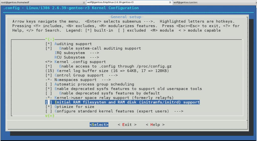 这个选上了,内核在启动过程中,会挂载这个小型的文件系统(主要成分为busybox),加载完磁盘驱动和其他驱动过后,开始挂载磁盘分区到根文件系统,系统就起来了.