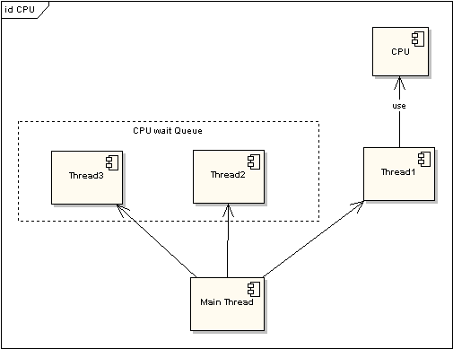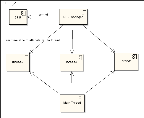 在图一中可以看到,任何线程如果都排队等待CPU资源的获取, 那么所谓的多线程就没有任何实际意义。图二中的CPU Manager只 是我虚拟的一个角色,由它来分配和管理CPU的使用状况,此时多线程将会 在运行过程中都有机会得到CPU资源,也真正实现了在单CPU的情况下实现多线程并行处理。