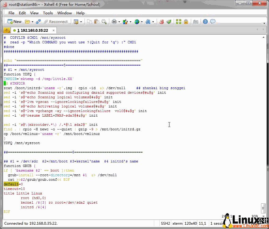 根据http://www.linuxidc.com/Linux/2011-08/40389.htm与http://www.linuxidc.com/Linux/2011-08/40390.htm整合,我们最终写好了一键制作Linux的脚本。这次真的是一键了,附带了常用的命令,以及欢迎界面,外加提示符等等。