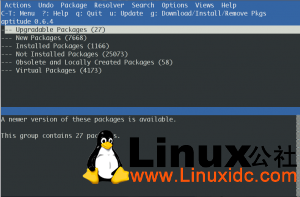 咱们先来看看常用的一些操作在aptitude中如何实现吧。首先更新软件列表和升级系统: