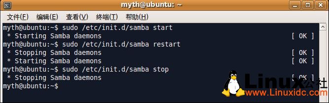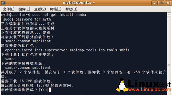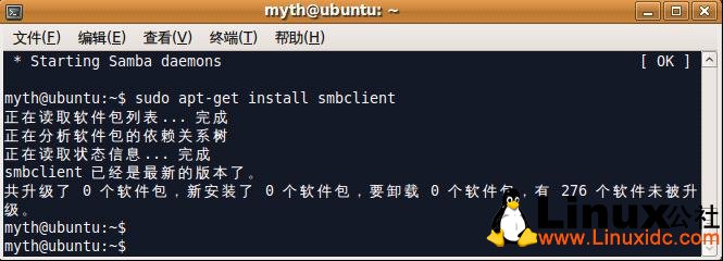 1. Samba软件包的安装使用源安装,在终端中输入如下命令: