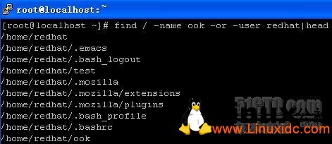 搜索条件默认使用AND迅速连接符; find / -name ook -user RedHat 就是满足文件名为ook,并且属于redhat这个用户的文件