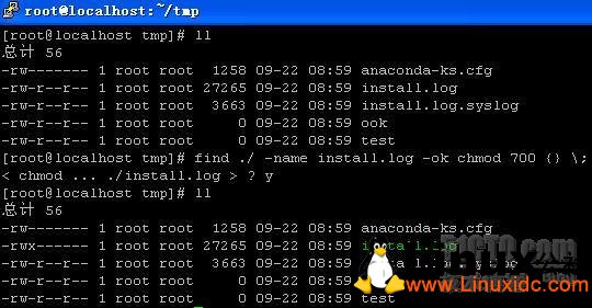 可以在找到的文件上执行命令:使用选项-ok或者-exec