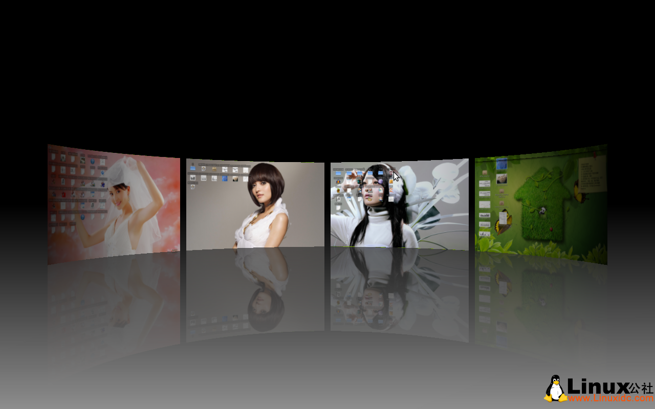 第四步,依次设置三个工作区的背景图片,但请记住一定要保留一个工作区的原始背景(其他三个工作区背景已经不同了,这个工作区也就不用修改了)。