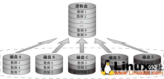 随着RAID技术经过不断的发展,现已有RAID 0 到 RAID 6 七种基本的RAID 级别,同时还有RAID 0和RAID 1的组合形式,称为RAID10。其中的级别并不代表技术的高低,而RAID 2和RAID 4基本上不再使用了,RAID 3则是由于实现起来太复杂也很少使用。目前这些常用的RAID级别Linux内核都能够支持,本节就以Linux 2.6的内核为例,在Linux 2.6内核中的软 RAID 可支持以下级别: RAID 0、RAID 1、RAID 4、RAID 5以及RAID 6等。Linux 2.6的内核除支持以上几种RAID级别外,还可支持LINEAR(线性模式)的软RAID,线性模式是将两个或更多的磁盘组合到一个物理设备中,磁盘不必具有相同的大小,在写入RAID 设备时会首先填满磁盘A,然后是磁盘B,以此类推。
