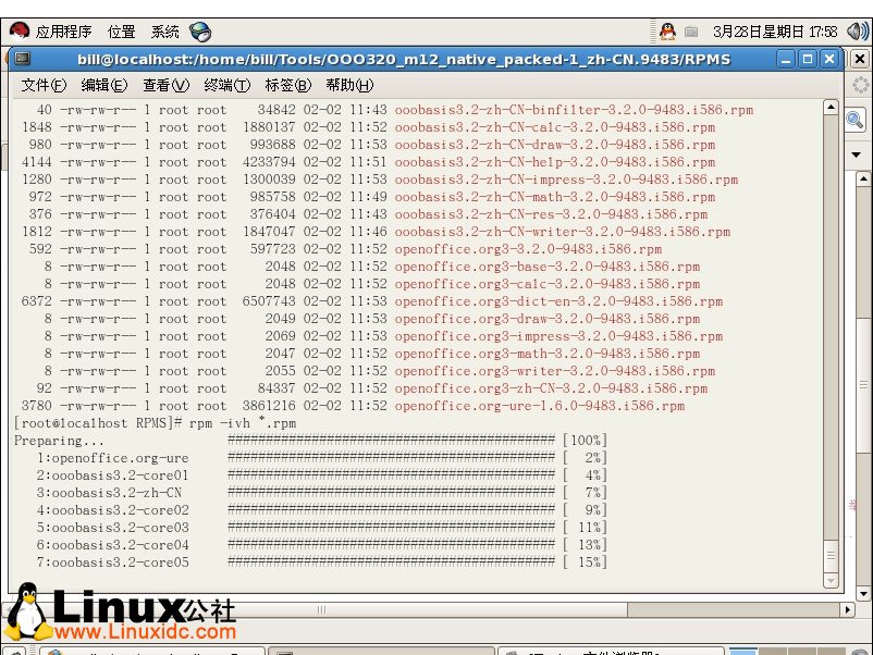 RedHat Linux 5 安装 OpenOffice 3.2.0