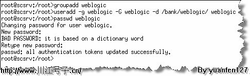 创建用户组weblogic,创建用户weblogic,并使用passwd为其设置密码