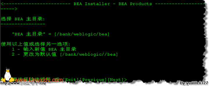 使用默认的“/bank/weblogic/bea”,直接回车即可。