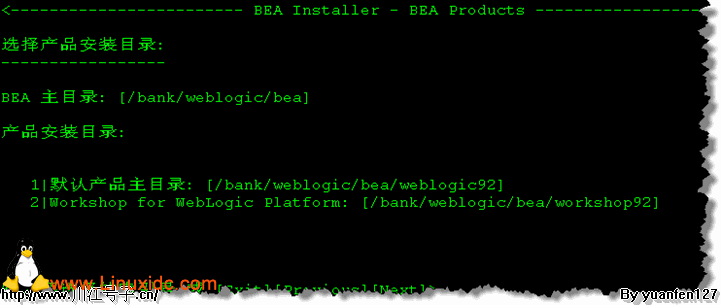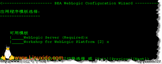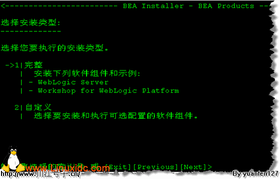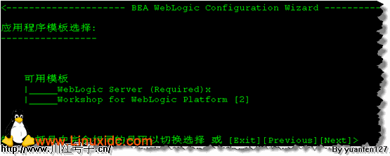 本示例输入“2”回车,可以看到“Workshop for WebLogic Platform”被选中(使用x表示),然后再直接回车继续