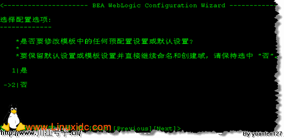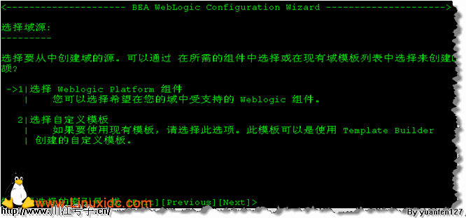默认就使用WebLogic Platform组件,输入“1”,回车