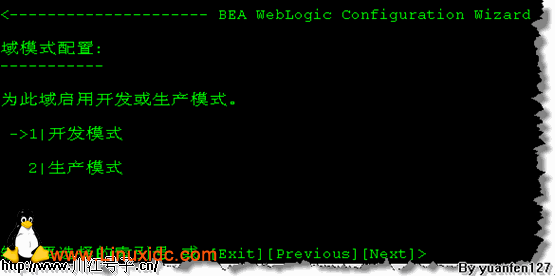 开发模式和生产模式的区别请另参考文档,本示例选择“开发模式”,输入“1”回车继续。