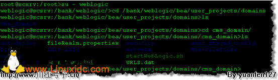 进入到/bank/weblogic/bea/user_projects/domains,可以看到cms_domain目录,此目录中就存放所有此域相关的文件和配置。
