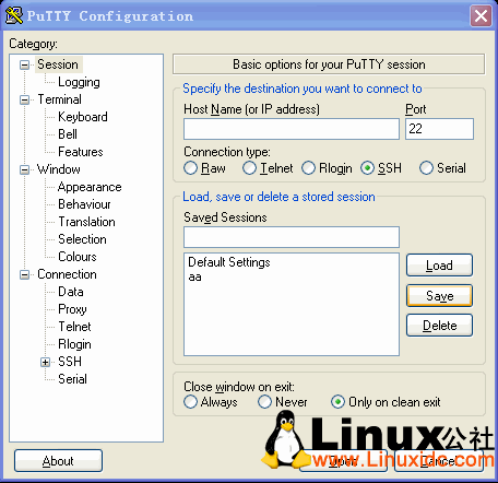 ① Windows下有很多的SSH客户端程序,这里使用PuTTY程序。