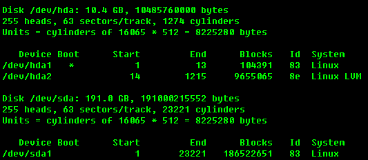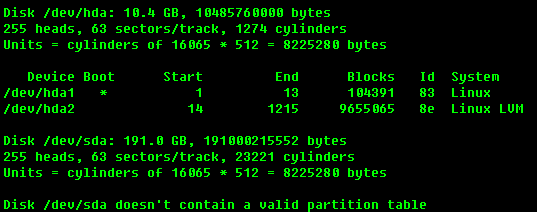 Disk /dev/sda doesn't contain a valid partition table, 这句说明了190g的磁盘没分区
