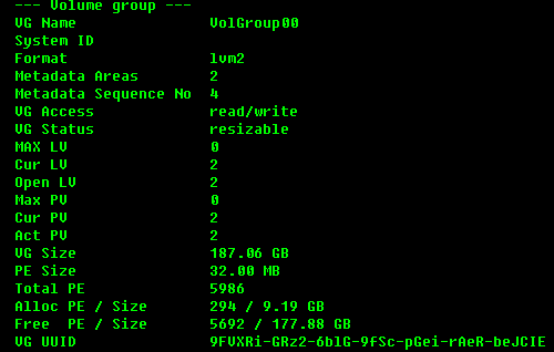 shell>vgextend /dev/VolGroup00 /dev/sda1