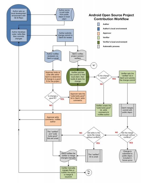 下图展示了Android每个版本源代码开发、升级的整体过程。