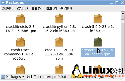 ps:版本因操作系统的版本有所区别,请查找当前系统的createrepo版本rpm包进行安装,可以到/home/hanxi/yum/Packages/文件夹下查找,如下图:
