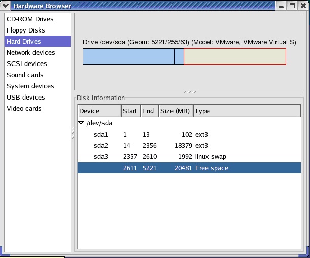 一、使用linux as4的硬件查看工具查看未使用的硬盘空间。