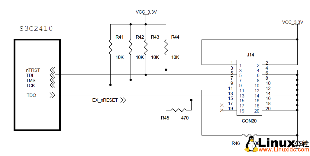 j-link 的4、6、8、10、12、14、16、18、20脚与 mini2440的8、10脚相连,这个信号是地。