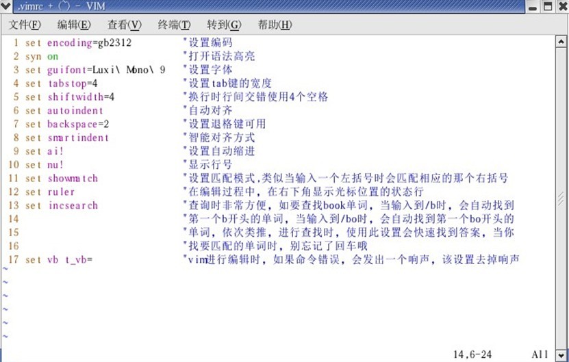 1.7 以上配置完成后,运行vi或vim, 编辑的文件里的中文无法保存及删除时只能删除半个汉字的问题都可以迎刃而解了.