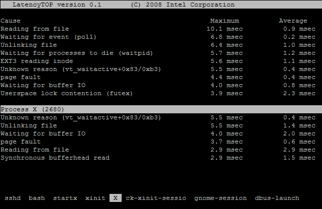 Latency Top version : v0.1