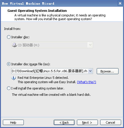 4.指定镜像文件 [选择第三个的话还要设置一下,安装Linux的版本以及设置一下镜像文件所在路径]