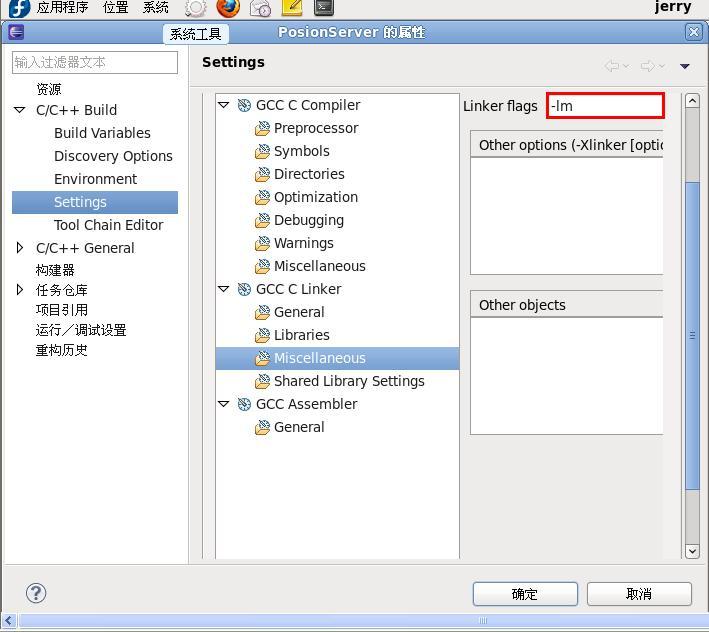 这时,只需要在“Libraries(-l)“里面添加一个”m“,这时eclipse就会在它自动生存的makefile里面生成gcc的-lm参数,这时make项目的时候 ,math.h库里面的数学函数就不回提示找不到了。