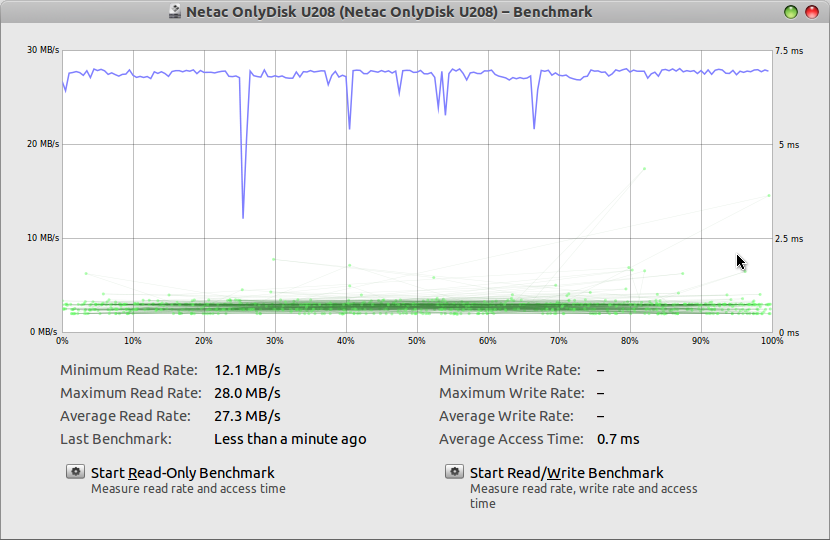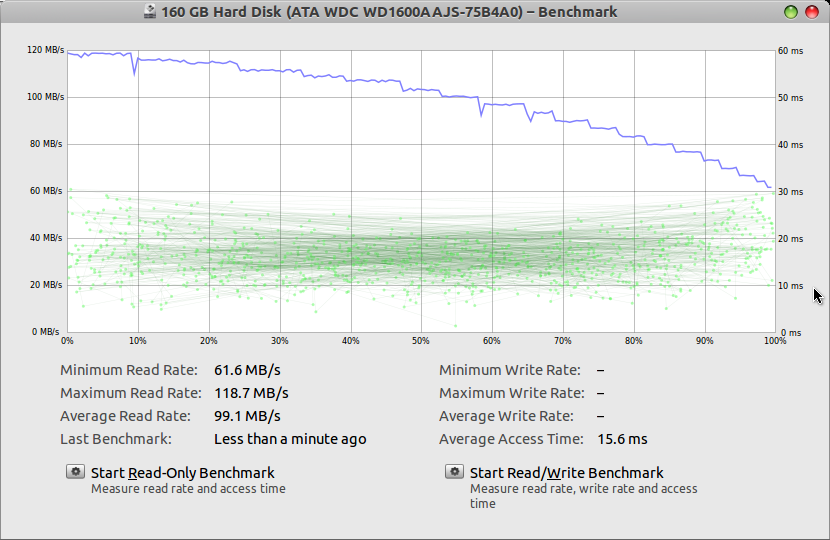 1 Ubuntu 自带的磁盘工具做的只读测试: