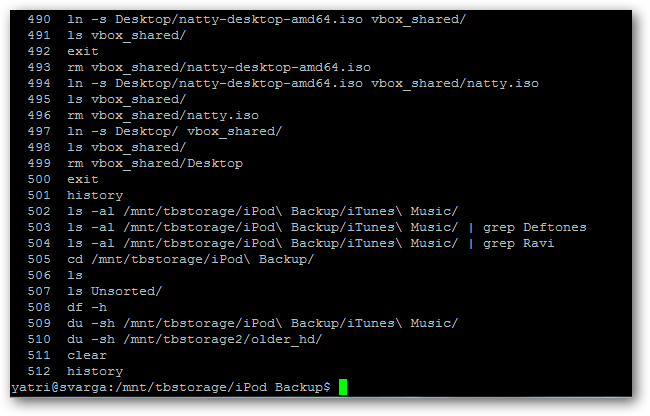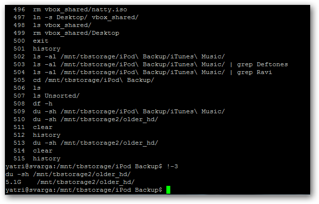 这些技巧大部分是利用 历史(history) 命令,我们首先输入