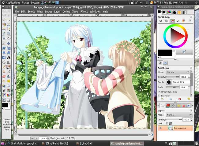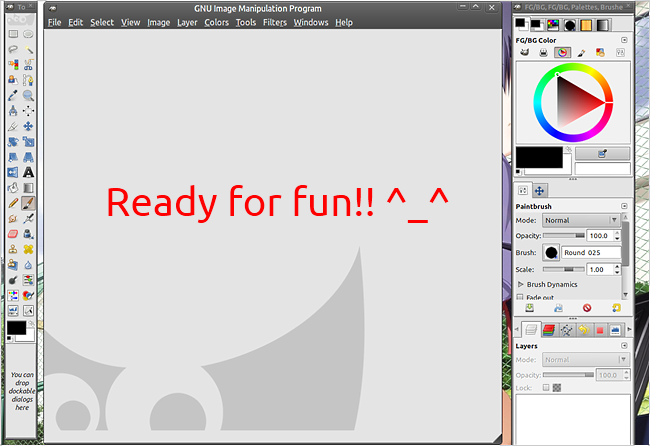 当移动之后, 运行GIMP开始享受吧。你可以看到在窗口大小和任务设置方面的差别。